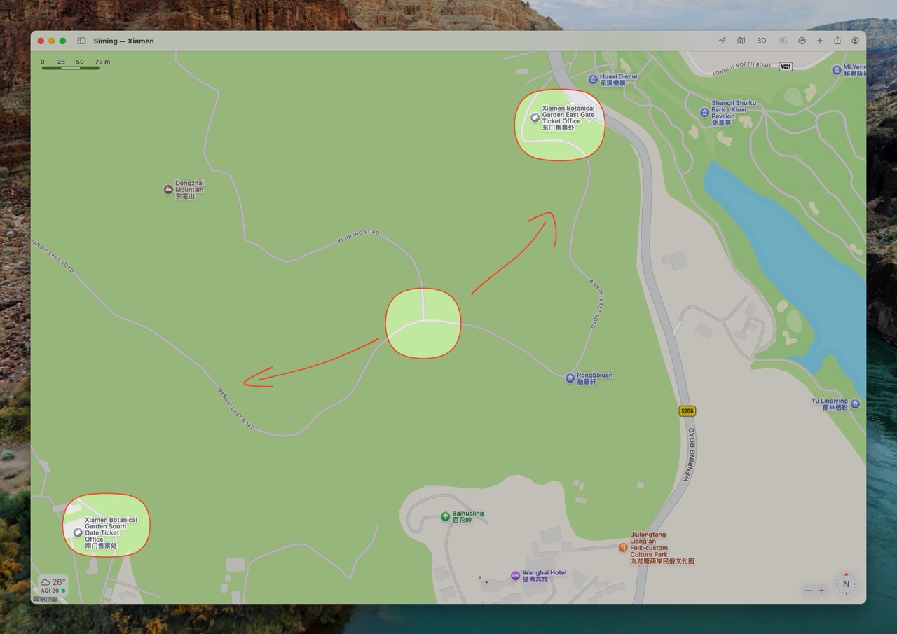 我是往右上坡,可以继续走到植物园南门和植物园西门